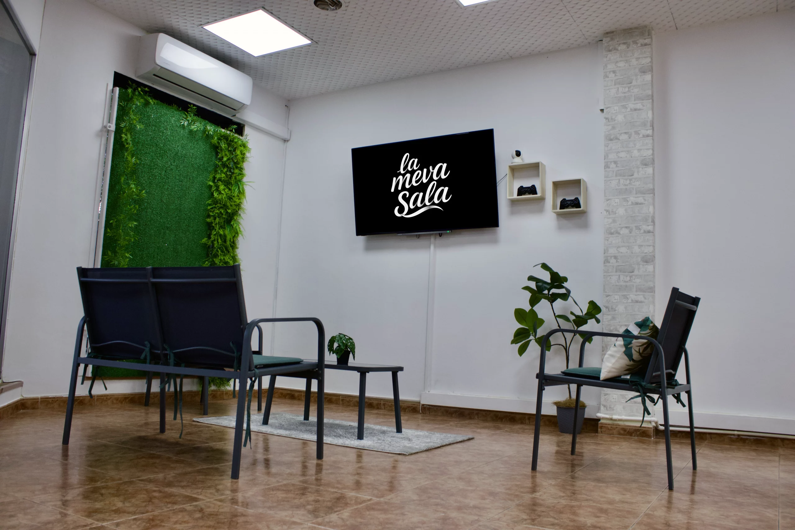 - Zona chill out con juego de sillas y mesa central